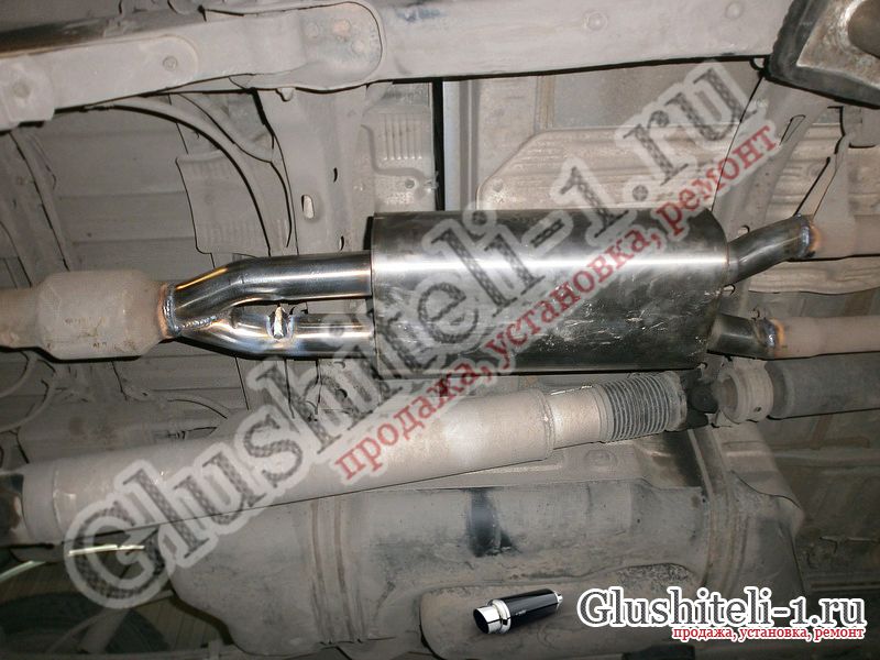 Toyota LC120, Установка спортивного глушителя + разводка на две стороны. Глушитель 20000р., насадки двойные 2шт. 8000р., установка 16000р.